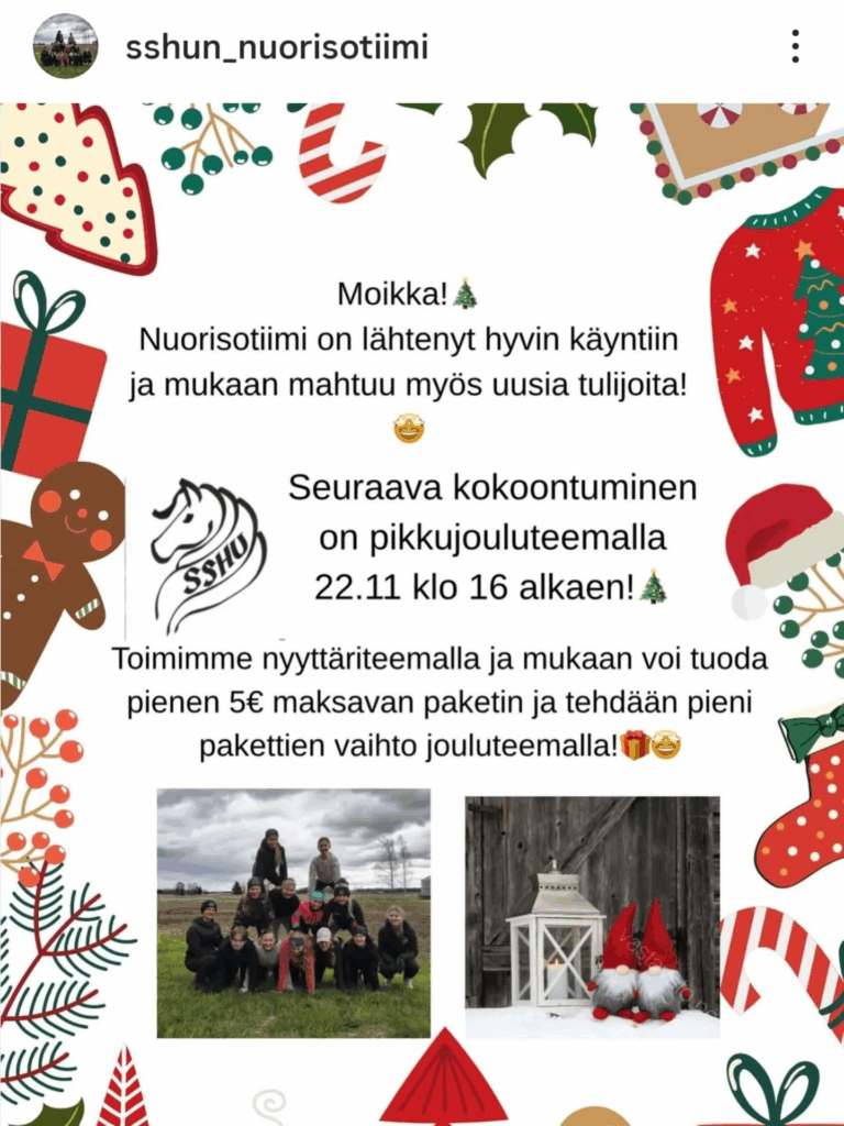 Mukaan mahtuu vielä lisää nuoria, kaikki seuramme 11-25vuotiaat jäsenet ovat tervetulleita, lisää tietoa @sshun_nuorisotiimi